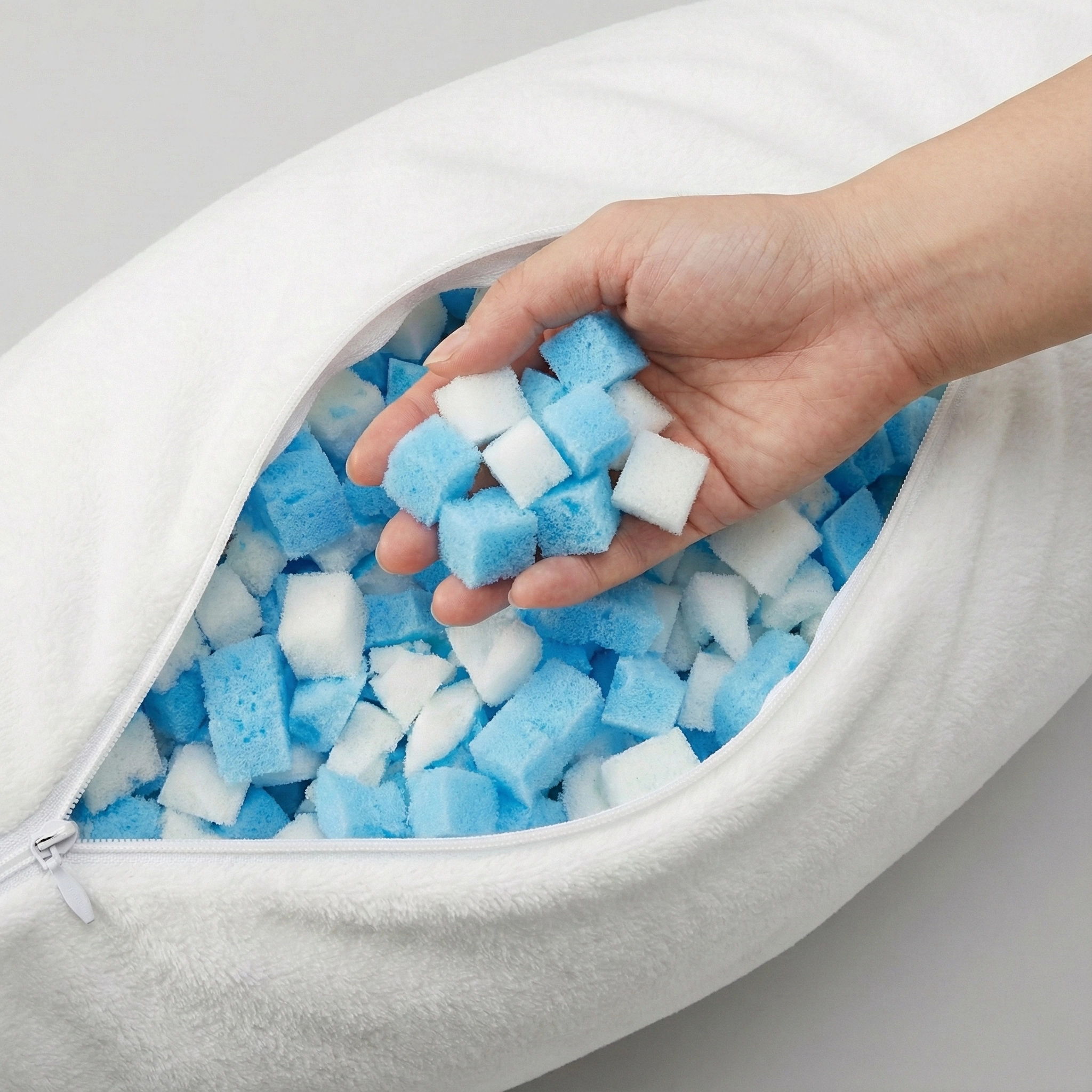 الخدّيه مصنوعة من ميموري فوم على شكل حبيبات دقيقة تسمح بتوزيع الوزن بشكل متساوي، مع دعم كامل للرقبة والكتفين، ونوم مريح من أول لحظة.